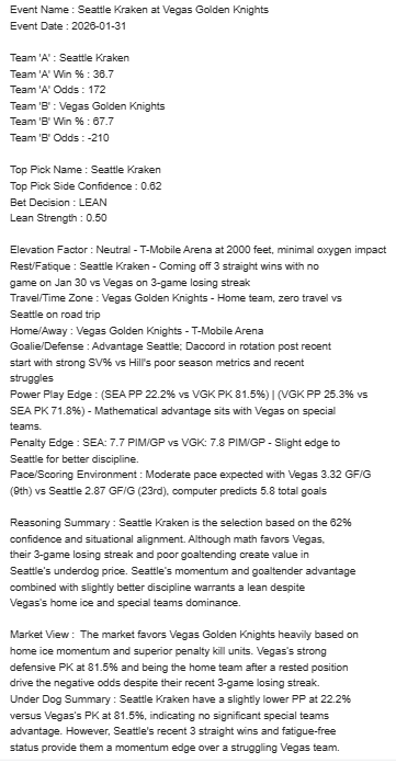 Our system goes far beyond surface-level stats, analyzing situational alignment, historical performance, and real-time market views to eliminate emotional bias.